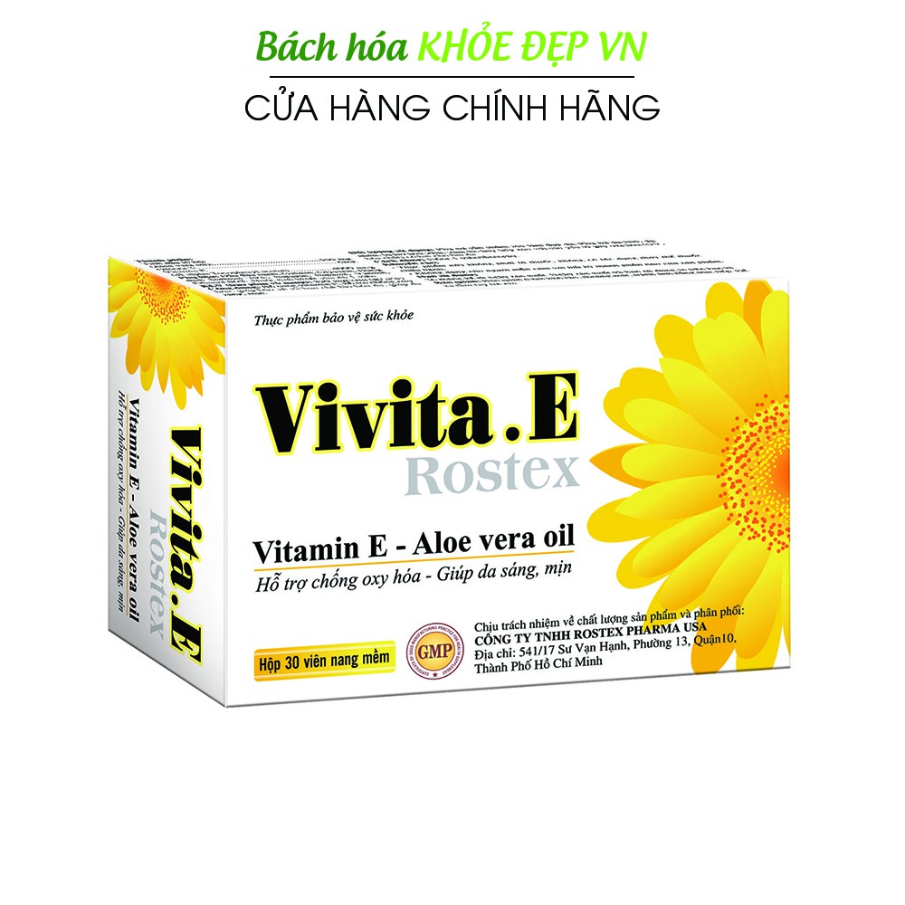 Miễn phí đổi trả nếu bán hàng kém chất lượng. Hiện tại Viên uống đẹp da bổ sung Vitamin E, Omega 3, tinh dầu nha đam - Hộp 30 viên [Vivita.E Rostex Trắng] đang được giảm giá chỉ còn 32,550đ. Số lượng có hạn hãy nhanh tay đặt khi còn hàng bạn nhé